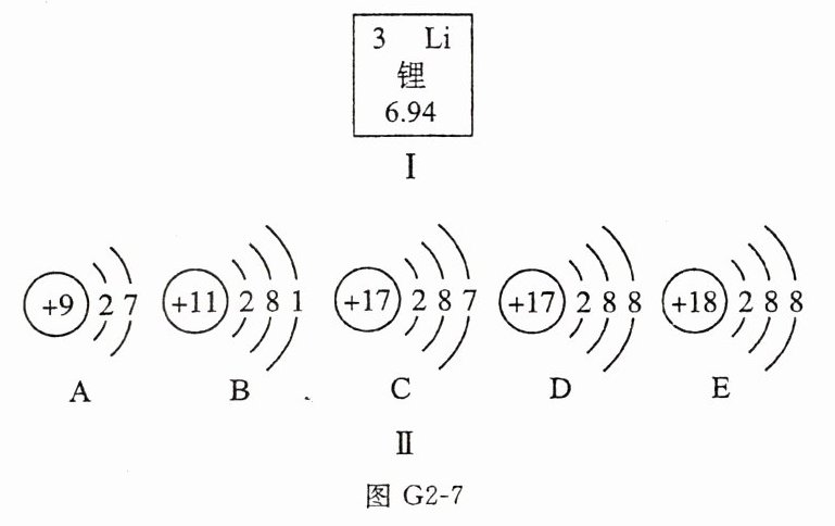 12. (2024 达州改编)达州蕴藏有丰富的锂、钾、溴等资源。图G2-7Ⅰ是锂元素在元素周期表中的相关信息,图Ⅱ是几种粒子的结构示意图。利用所学知识回答下列问题。