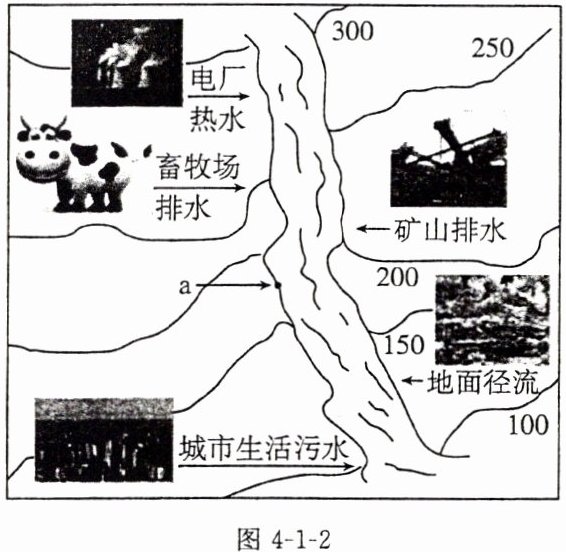 (1)如图4-1-2所示,结合等高线地形图分析a处水体污染的来源可能是______(填字母)。