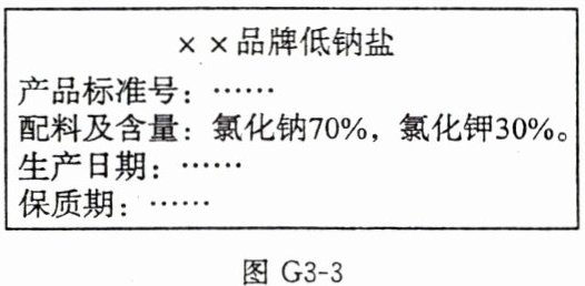 16. 低钠盐是一种健康食盐,它以加碘食盐为基础,添加一定量氯化钾,从而实现减钠补钾。图G3-3为某品牌低钠盐标签,请你根据标签回答以下问题。