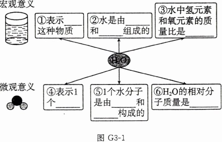 13. 利用图文并茂的形式梳理物质的属性是一种知识整理的方法。以化学式“$H_2O$”为例,请在图G3-1中的横线上填空。