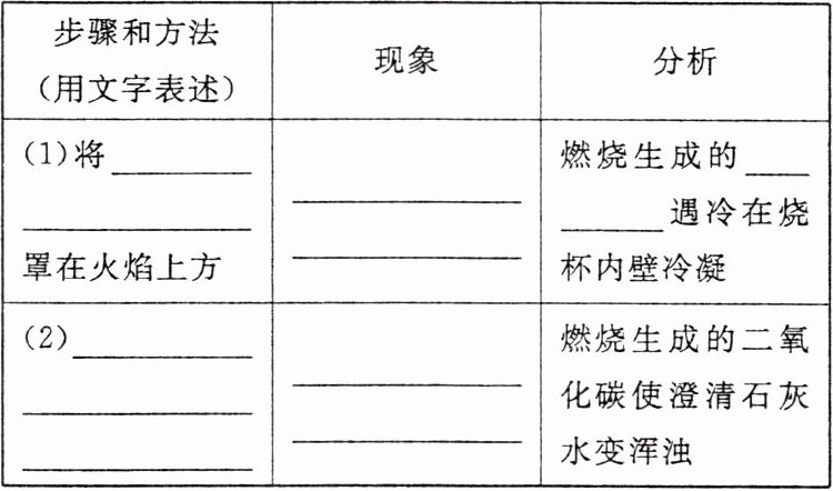 | (1)将______罩在火焰上方 | ______ | 燃烧生成的____遇冷在烧杯内壁冷凝 |