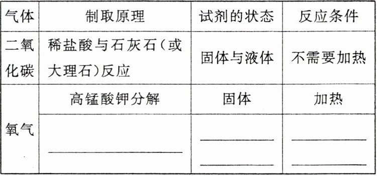 (1)比较二氧化碳和氧气的实验室制取过程,完成下表。