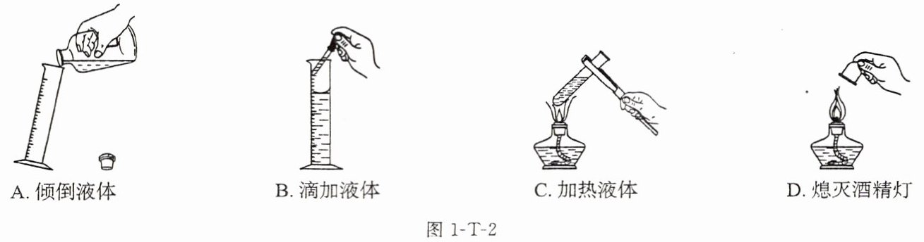 (2)如图1-T-2所示为量取一定体积的液体并加热至沸腾的部分操作,其中正确的是______(填字母)。