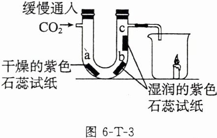4. 用图6-T-3所示实验研究$CO_{2}$的性质。一段时间后观察到蜡烛熄灭。