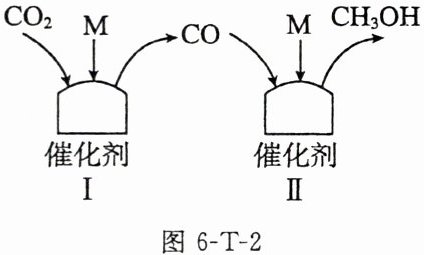3. 杭州亚运会火炬使用零碳甲醇($CH_{3}OH$)。我国科研人员研制出一种新型催化剂,能将$CO_{2}$转化成甲醇,其转化过程如图6-T-2所示(M为单质、部分产物省略)。请回答下列问题。