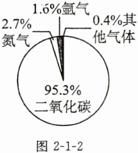 4.科学家通过“祝融号”火星车探测器测得火星表面大气成分(体积分数)如图 2-1-2 所示,下列说法正确的是( )