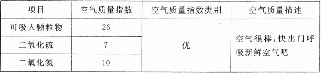 ) |项目|空气质量指数|空气质量指数类别|空气质量描述|