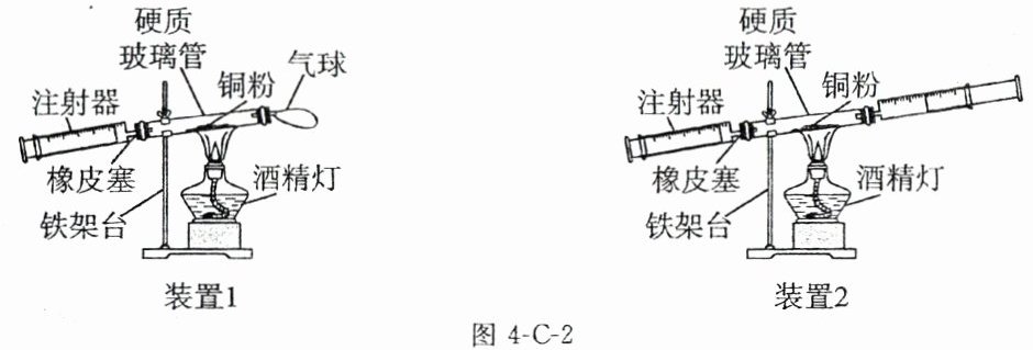 C.将装置1中的气球更换为注射器(如装置2),可使空气与铜粉接触更充分,数据更加准确