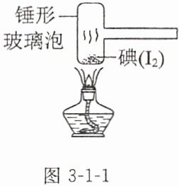 5. 如图3-1-1,加热密封锤形玻璃泡内的碘颗粒,观察到玻璃泡内充满紫红色气体。