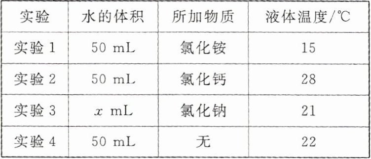 |实验|水的体积|所加物质|液体温度/$^{\circ}C$|