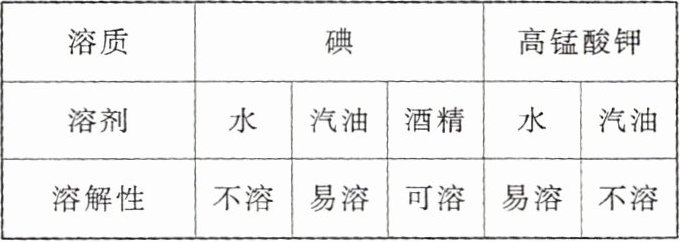 )|溶质|碘|高锰酸钾|