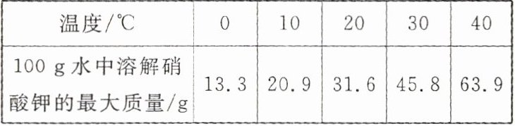 |100 g水中溶解硝酸钾的最大质量/g|13.3|20.9|31.6|45.8|63.9|