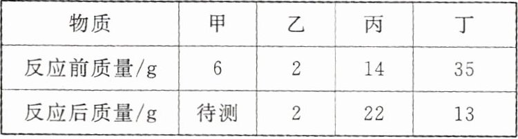 |反应后质量/g|待测|2|22|13|