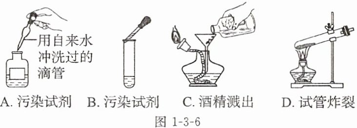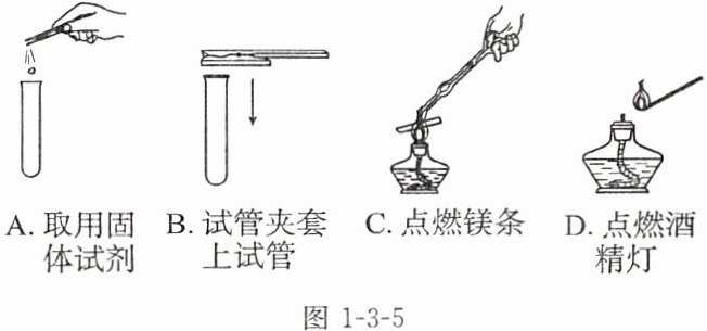 4. 如图 1-3-7 所示是实验课上某同学练习试剂的取用和给物质加热的操作图,请回答下列问题。