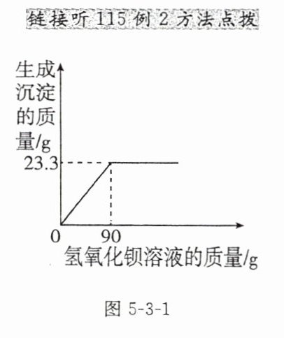4. 为测定某硫酸溶液的溶质质量分数,实验小组设计了以下方案:在烧杯中加入该硫酸溶液100g,然后向烧杯中逐滴加入氢氧化钡溶液,滴加的氢氧化钡溶液的质量与生成沉淀的质量关系如图5-3-1所示,请你帮其解决下列问题。[已知:硫酸和氢氧化钡反应的化学方程式为$H_2SO_4+Ba(OH)_2= BaSO_4↓+2H_2O]$