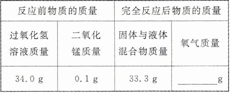 |过氧化氢溶液质量|二氧化锰质量|固体与液体混合物质量|氧气质量|