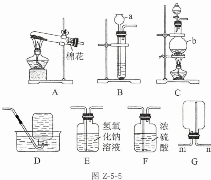 (填字母)。若用G装置收集$SO_2,$气体应从______m