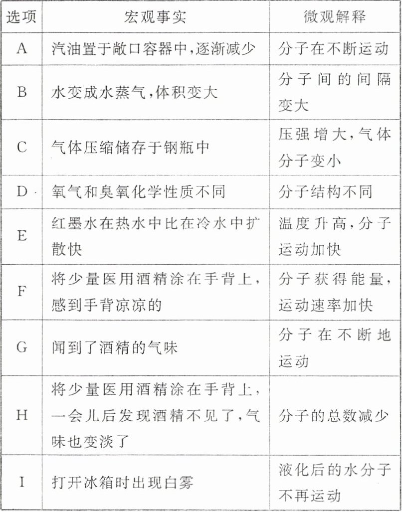 |G|闻到了酒精的气味|分子在不断地运动|