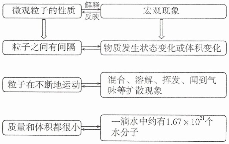 粒子之间有间隔 → 物质发生状态变化或体积变化
