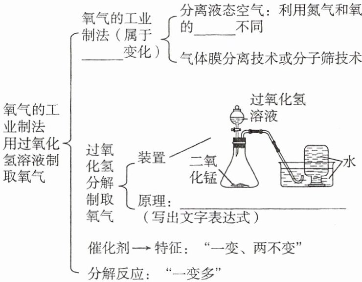 物理 沸点 过氧化氢$\xrightarrow{二氧化锰}$水+氧气