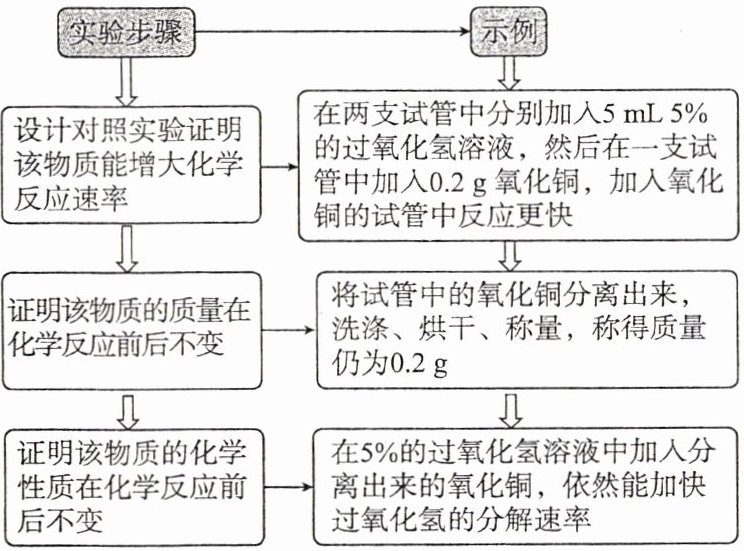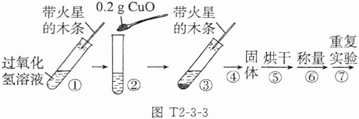 例2 为了证明氧化铜($ {CuO} $)能作为过氧化氢分解的催化剂,某小组用天平称量0.2g氧化铜,取5mL5%过氧化氢溶液于试管中,进行如下实验。有关该实验的下列说法,正确的是( )