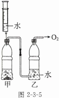 ____(填基本反应类型)。(3)化学兴趣小组利用某固体增氧剂(可与水反应产生$O_{2}$)、饮料瓶、注射器、吸管、输液管等设计并制作了简易供氧器,如图2-3-5所示。图中的甲装置与图2-3-4中的____