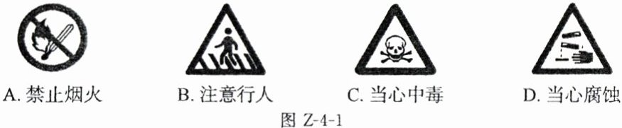 1. 某学校到某棉纺厂参观,棉纺厂主要生产棉纱等产品,你认为棉纺厂生产车间应张贴如图Z-4-1所示标志中的( )