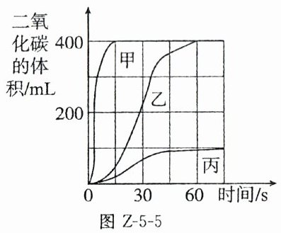 11. 实验室制备并收集二氧化碳,按下表进行实验,取等质量的同种大理石加入足量酸中(杂质不与酸反应),产生二氧化碳的体积随时间变化曲线如图Z-5-5所示,下列说法错误的是( )