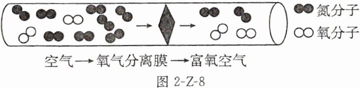 (3)从物质分离角度:渗透膜法制氧利用膜材料对气体分子的选择性渗透作用,在一定压力下,让空气通过氧气分离膜,可得到富氧空气,如图2-Z-8所示。