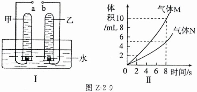 (1)如图Z-2-9Ⅰ是电解水的装置,如图Ⅱ是甲、乙试管中收集到的气体体积与时间的关系图,若甲试管中生成的气体是M。