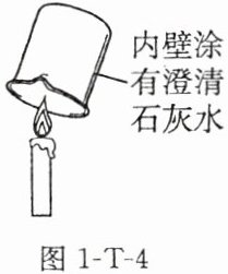 [进行实验] 同学们将一个内壁涂有澄清石灰水的烧杯罩在蜡烛火焰的上方(如图1-T-4所示)。