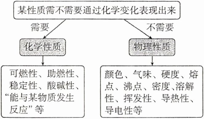 └───不需要→物理性质→颜色、气味、硬度、熔点、沸点、密度、溶解性、挥发性、导热性、导电性等