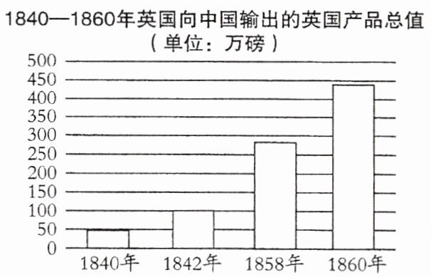 (1)根据材料一,概括 1840—1860 年英国向中国输出的产品总值的变化趋势并分析出现这种趋势的原因。(3 分)