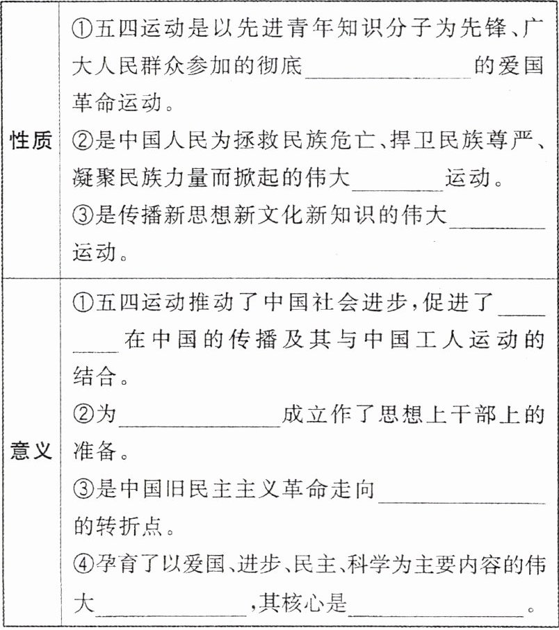 1. 反帝反封建 社会革命 思想启蒙 马克思主义 中国共产党 新民主主义革命 五四精神 爱国主义精神