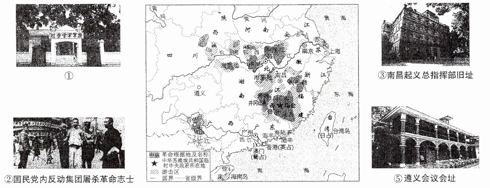 (图①)是国共合作的重要成果,为国民革命军建立和北伐战争作了准备。由于国民党内反动集团背叛革命(图②),轰轰烈烈的国民革命失败。2. 中国共产党发动一系列武装起义,创建人民军队,反抗国民党反动统治。图③所示事件打响