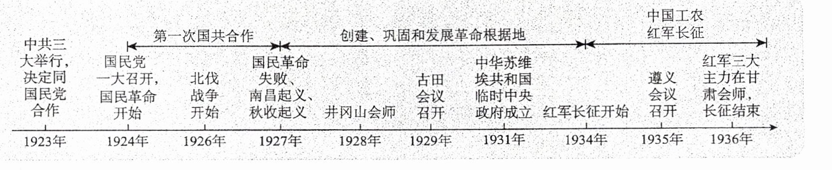 1 国民革命 国民党一大召开 黄埔军校 2 武装反抗国民党反动派 3 工农武装割据 井冈山 4 战略转移 毛泽东