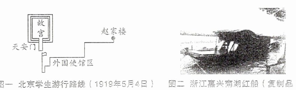 (1)图一:五四运动。图二:中国共产党成立(中共一大召开)。影响:五四运动为中国共产党成立作了思想上干部上的准备。