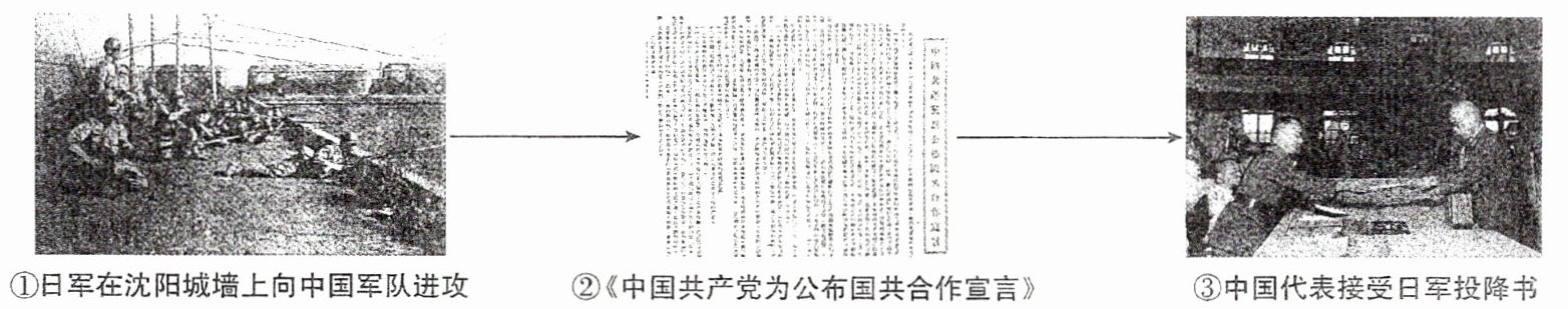 抗战。国共两党实现第二次合作(图②),建立抗日民族统一战线