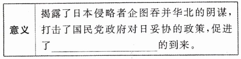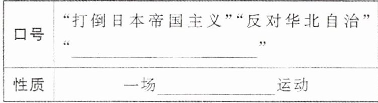 (1)背景:1935 年下半年,日本策动所谓“华北自治运动”,妄图使华北五省脱离中国版图。国民党政府继续对日采取