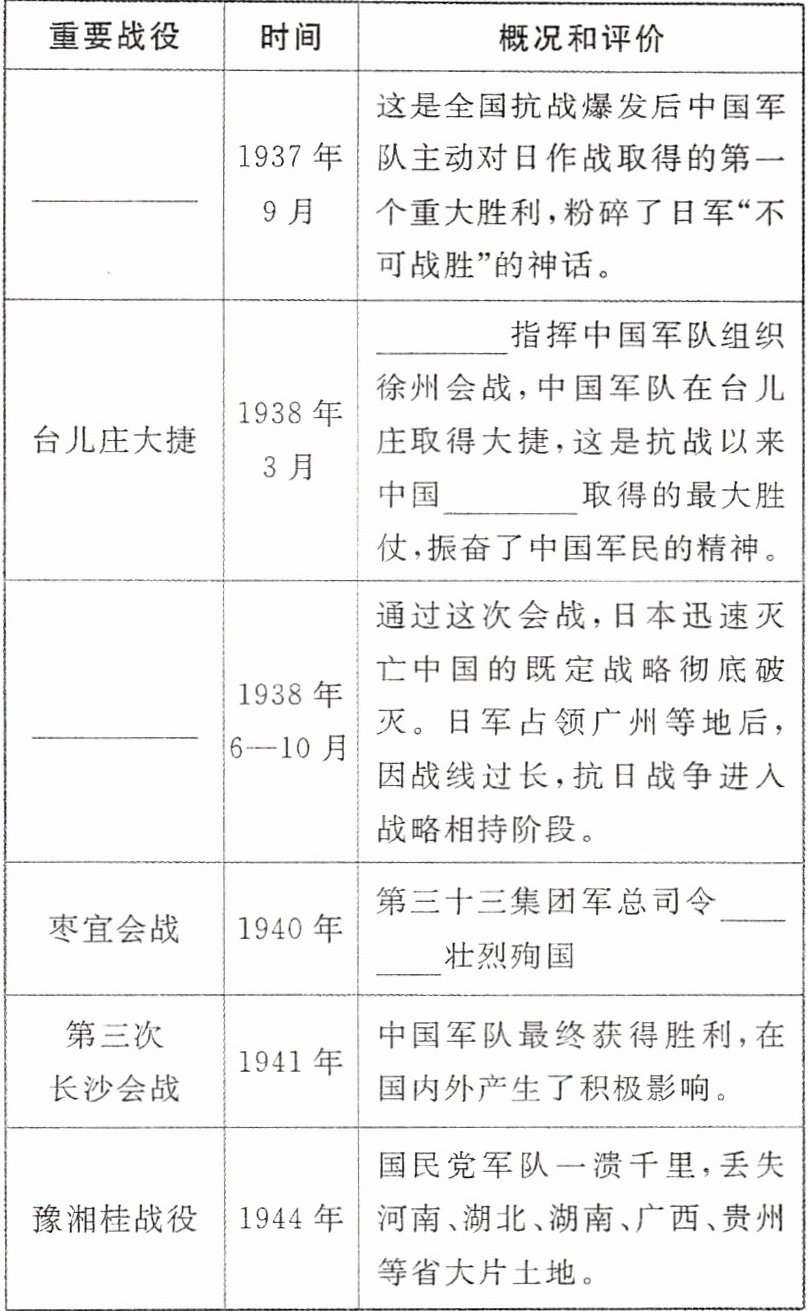 3. 百团大战:1940年8月至次年1月,____指挥八路军100多个团,在华北对日军发起主动进攻。有力打击了日军侵略气焰,提高了____和八路军的威望,振奋了全国军民争取抗战胜利的信心。