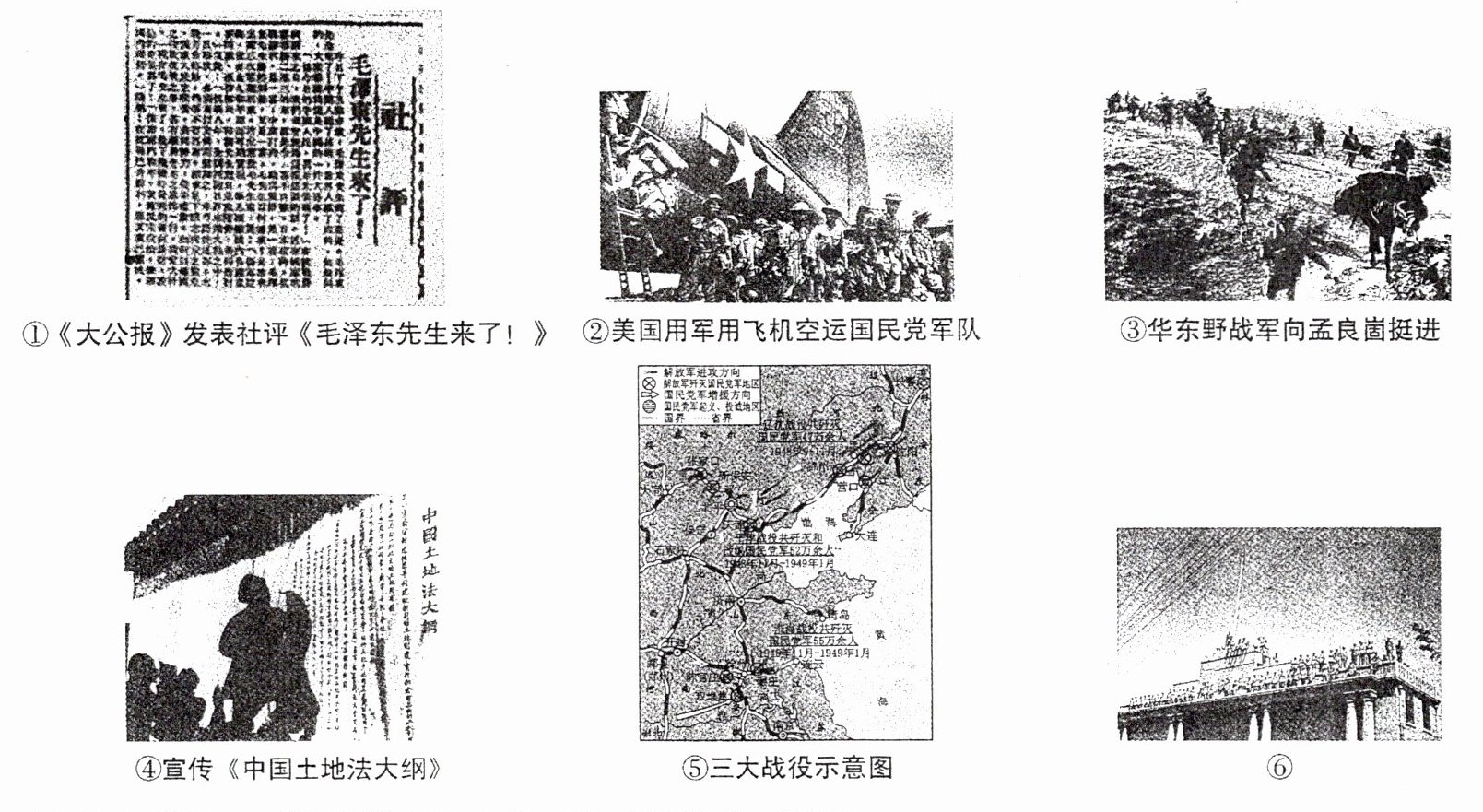 、平津三大战役(图⑤)和渡江战役,解放南京
