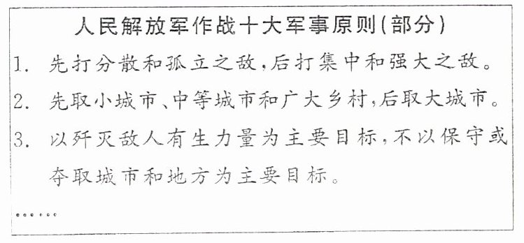 4. 中国人民解放军在1947年提出了“人民解放军作战十大军事原则”,下面符合作战军事原则第3项的事件或战役是(