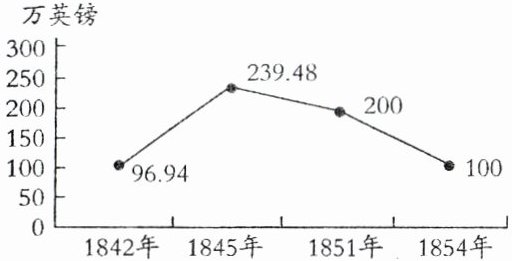 2. 下面为英国输华货物总值变化示意图,该图显示1842—1845年间英国输华货物总值呈现增长趋势,主要是因为(