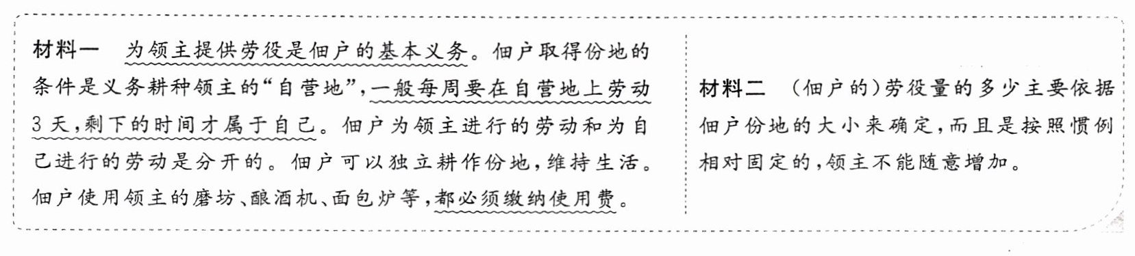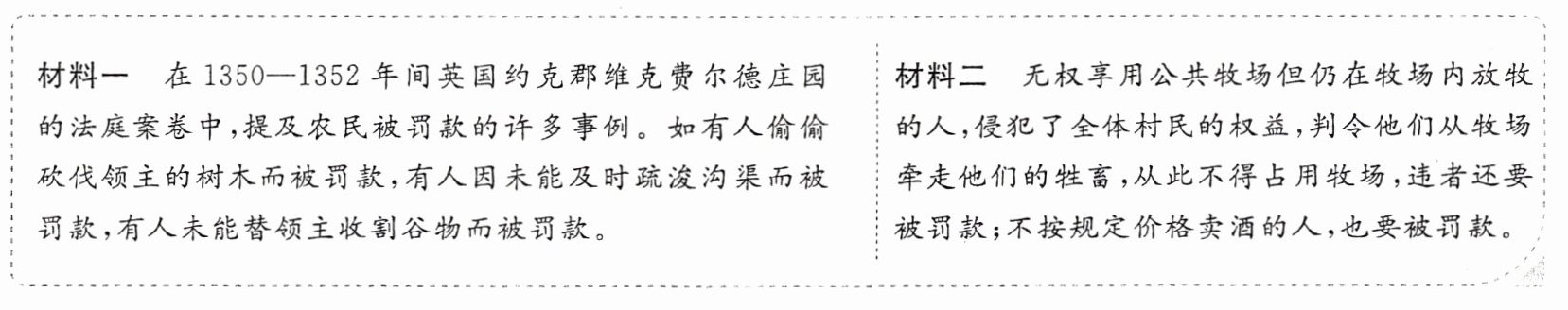 情境任务 3 【教材 P40“相关史事”改编】根据以下两则材料并结合课本,分析庄园法庭的作用。(2 分)