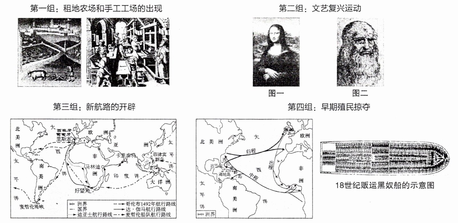 1. 租地农场 手工工场 2. 文艺复兴 蒙娜丽莎 达·芬奇 3. 资本主义 隔绝 世界市场