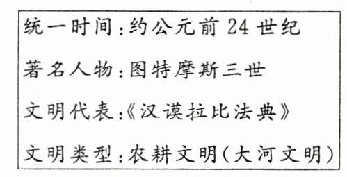 1. 【学习情境】右面是九年级某班同学制作的关于古代两河流域文明的历史学习卡片,其中有一处错误,该处是(