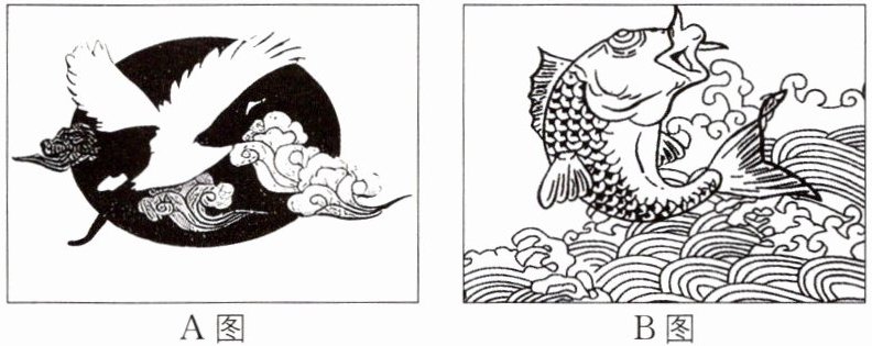 A图 在A图中,太阳缓缓落下,还有一只鸿雁飞过。崔颢曾写下"日暮乡关何处是"的诗句,让人不由得产生"日暮思归"之情;雁是传递家书的信使,唐朝诗人王湾也写下过"乡书何处达,归雁洛阳边"的诗句,目睹此情此景,让人不由思念起家乡。而B图展示的是一条鱼在浪花里翻腾的情景,营造的是欢快、昂扬向上的气氛,与"乡愁"的主题无关。