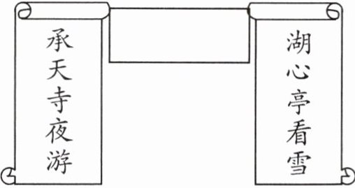 (1)【审美创造】【拟写对联】梁衡在《秋月冬雪两轴画》中说,《记承天寺夜游》和《湖心亭看雪》是我国古典文学宝库中的两轴精品。如果以“湖心亭看雪”和“承天寺夜游”为上下联,请从两文中分别选取一个字,两个字合起来作为这副对联的横批,并阐释一下理由。