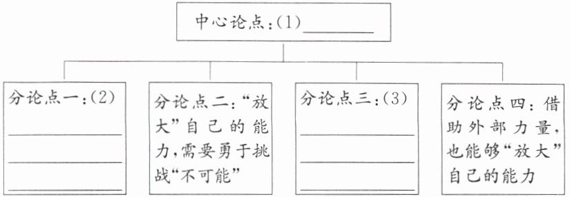 分论点一:(2) 分论点二:“放大”自己的能力,需要勇于挑战“不可能” 分论点三:(3) 分论点四:借助外部力量,也能够“放大”自己的能力