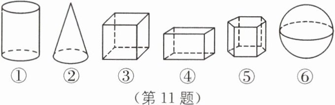 (2)①③④⑤为一类,它们都是柱体;②是一类,它是锥体;⑥是一类,它是球.